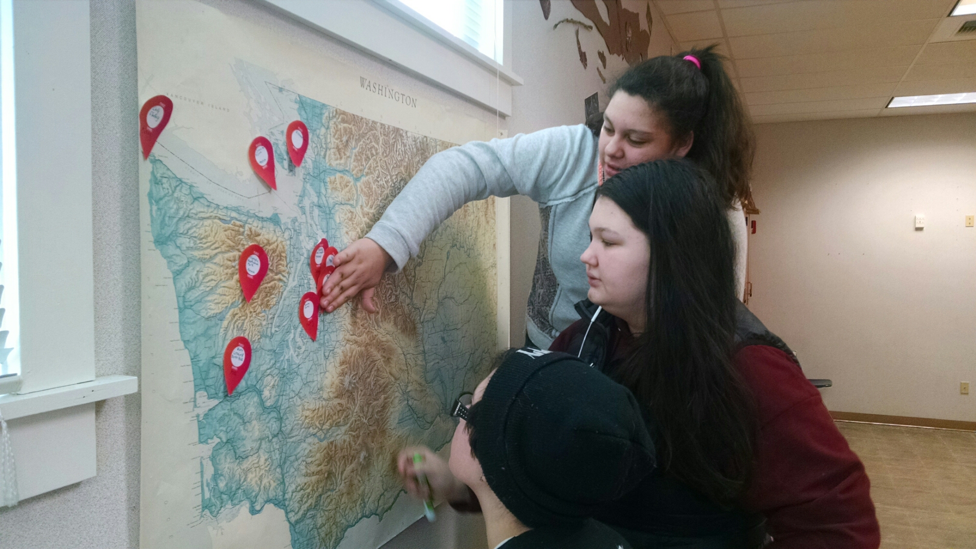 To give the kids a sense of accomplishment along the way, we’re having them place pins on the big Washington State map every time they finish a region. So far, we’ve covered The Islands, Peninsula and Coast, and Seattle regions. The upper left quadrant of the map is looking pretty good. Next up: The North Cascades.